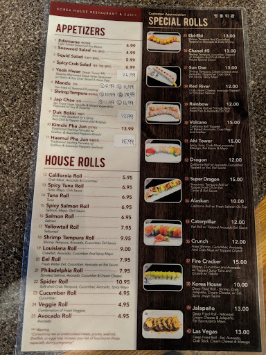 "No sushi on Sundays"? Please dont advertise it in your name then... The Korean food was pretty good, but the menu was confusing and didnt offer English descriptions and the waitress didnt understand when I started asking questions either. Beware if you have allergies and dont speak Korean. Finally, there was a mistake in the billing, but they did fix it. The experience was not very good, but the flavorful food partly made up for it.