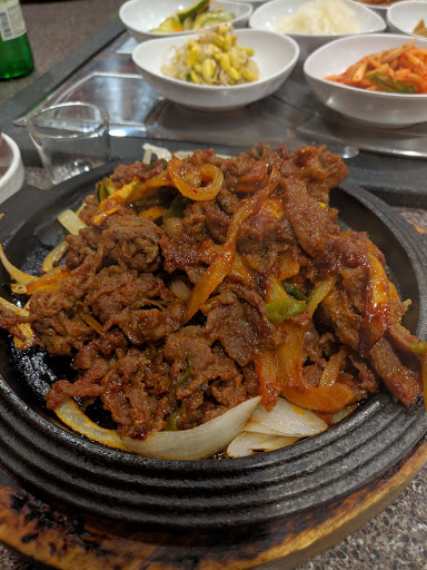 It was a Sunday night and we had a party of 7 people. We were excited to get to sit down, chat and hang out while cooking our own Korean BBQ. Driving up to the driveway, it looked closed. We checked and they were still open but completely empty. Not sure if it was a good thing or a bad thing that a restaurant is empty on a Sunday night. They sat us down quickly and got our drinks out right away. The water was obviously tap...a strong tap water at that. Since there were no other guests, they took really good care of us...a little too good! They basically stood over our shoulders and watched us! Food came out quick but instead of getting to cook for ourselves, they poured the meat onto the grill and began grilling for us. We just sat back and stared at one another. We felt rushed and didnt really get to enjoy savoring the food as we cooked. The food was GREAT but the service was overbearing. Plus, we didnt get as much for what we paid for. We all left with our bellies half full. We stopped by another place for yogurt afterwards and some of the guys wanted to stop by Jack and the Box because they were still hungry. Although the food was good, I would not recommend this Korean BBQ to any friends.
