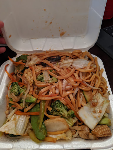While searching for an apartment I drove by and saw Moon Wok. The catchy clever name caught my eye. Since i was getting hangry, I decided to stop by and give it a shot. Vietnamese spring rolls were nice and fresh but lacked the extra herbs that usually set this dish off. Truly needs a bit of mint or cilantro to make it pop. Peanut sauce was bland as well but luckily there was Sriracha to add & now it is splendid. California roll was very fresh and tasty. Could have used a ramekin to mix my soy & wasabi but my extra plate did the job well enough. The kitchen was an absolute mess however. Ive worked in kitchens a long time and I know this doesnt necessarily mean unclean but it was a bit concerning. And sadly the restroom was absolutely awful!!! Had I not been in a car all day, really needing to go, I would have skipped the restroom all together. Truly disgusting and one of the 2 stalls had no tissue. Trash ALL over the floor. Counter tops covered in soap and water and trash! &! The toilet wouldnt flush! Have fun with that prize! Maybe Ill try and get delivery next time!