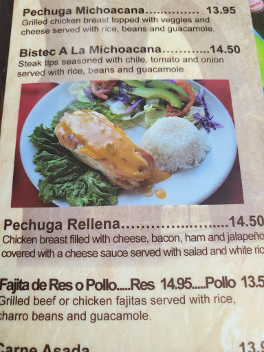 Food was ok . Place was freezing and kept playing regueton music in the background, drunks on a corner being loud and then they had a group of musicians for a Birthday party. My Chile relleno plate came with beans, rice and salad of which the beans and Chile where smothered in cheese and salad also had yellow cheese on it. My dad likes the place.. He Recommends Pechuga Michoacana