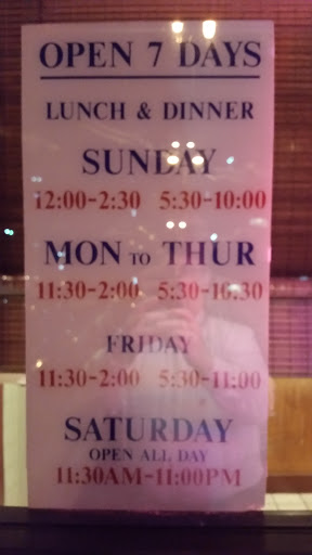 | Working: | 11:30AM–2PM 11:30AM–2PM 11:30AM–2PM 11:30AM–2PM 11:30AM–2PM 11:30AM–11PM 12–2:30PM |