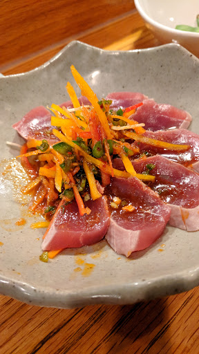 We had 1 gyoza and 3 sushi rolls. The total price was $42 which is good and the only reason for one of the stars. Gyoza taste like unflavored cooked flour with very little pork. The eel sushi taste good, tiger roll was designed good but the taste was lacking a world of flavor! No use of good seeds, seasonings or spice. Out of the 13 sushi places I have eaten so far I rate this restaurant on the bottom 5.