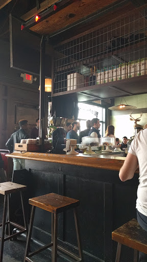 I havent been super impressed with anything Ive gotten here so far. Its all fine but the popularity is based on location and hipster tourism. People visiting the area feel like its funky and cute I think. This time I was sitting at the bar when they called my name. The guy who had taken my order pointed me out to the guy making drinks, who said something like "oh now you want me to take it over there?" (which would mean turning around and taking two steps). So order guy laughed and they left my drink there. I got up and walked around the bar to go get it. They both had plenty of time to chit chat with their other friend sitting three seats over from me though. I understand the expectation on my end but they have one too. They did what they were supposed to do but that was it. So its fine. Its okay. It passes. Its not exceptional and service isnt stressed.
