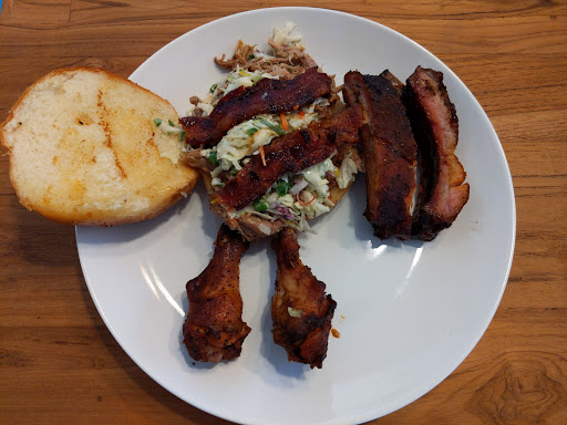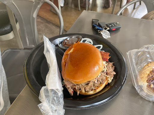 Pulled pork and brisket were very mediocre, dry, not much smoke flavor, and doused with a stong sauce to cover it. The moppin sauce technique is used to here to try to restore the moisture the brisket has lost, and it doesnt work. The potato salad tasted like it was right out of a large tub from Sysco food supply or Albertsons. I dont recall if they say it is "homemade" or not, but it sure doent taste like it. The beans tasted like they were also canned, or made "off-site", then "doctored", or "kicked up" on-site, but they were doctored well and tasted good. In fact, I enjoyed the beans more than either meat! Service was slow and not very friendly.I didnt feel like they were glad to see me, but instead got the feeling I was a bother. I usually could care less about the decor of a BBQ place, since its supposed to be about the meat. But here, the decor seems "inconsistent" with a BBQ experience. Its an old service station (small building with cramped seating spaces) given a "50s diner" sort of make-over. Their website shows an open and airy looking space with not to many tables and chairs. Thats not how it was when I was there. Instead, there were way TOO many chairs and tables, TWICE what you see in their website pic.