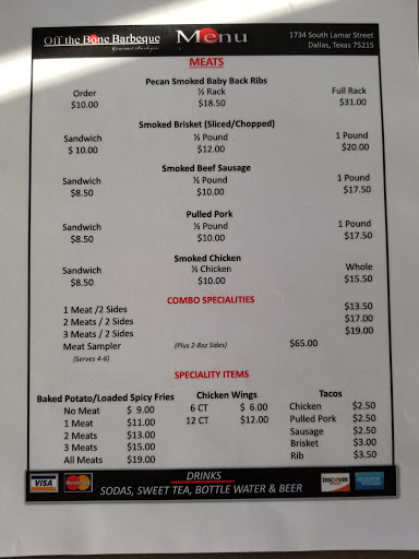 We stayed at the new Omni hotel this past weekend taking our daughter to the volleyball competition. When we walked out the front door we asked one of the employees (fabian I remember to be his name) about a good place to get some great real texas barbecue. He immediately told me he knew the perfect place. He told us to take a short taxi ride down Lamar street and we would see it on the left. When we walked in the employees looked a little questionable but after a few words they had us laughing with great jokes. Then when they brought our food to the table we were blown away. The ribs were so tender and we could taste the smoke flavor throughout every bight. Also, the chiro beans with meat in them put the icing on the cake. Perfect amount of seasoning with a lot of texas spice. We were very impressed. We told them that anytime we come to Dallas we would be visiting them. We made it back to the hotel and thanked the man that suggested this barbecue restaurant to us! Off the bone was off the chains.