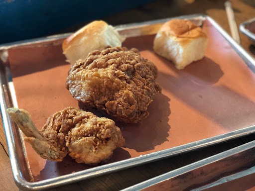 The one star is for what it used to be. When they were at the Farmers Market. Before Diners, Drive Ins, And Dives found them. Heck, it was even still great BBQ 6 months after the taping because it didnt air right away. First came the line snaking around the perimeter of shed 2. So that even if you got there before the brisket sold out, by the time the 50 people in front of you went through you were lucky to get a piece of fried chicken. I did not come to homelessville downtown for chicken. Next, it was the service. That can be a bit expected because of the hundreds of people they were serving now, but a smile or look of acknowledgement to someone who has been there since the beginning was too much to ask. Forget about coming out to talk to the diners eating your food as was customary. Then they moved to Deep Ellum and gave the reigns over to cooks who know didley about laying the perfect amount of smoke on the que and what we end up with is something reminiscent of the smell of cheap dog food.. Or those begging strips my Dalmatian is so fond of. Finally the quality of the meat began to suffer. What I ended up with was overly fatty brisket on one end or tough as shoe leather on the opposite end. No pork flavor on the ribs. The silver skin they forgot to peel was stuck in my teeth. Beef ribs full of gristle and fat. Fried chicken that taste like they need to change the fry oil. But it was the brisket that was the biggest disappointment. Brisket I used to wake up early Saturday morning for, drive down town and spend over $100 on several pounds of it.. this GRAY piece of meat that Ive been chewing on fir 8 solid minutes, that Im now spitting out is NOT that brisket. Ill pass. There are far better places serving Que in this town. This is not representative of good Texas barbecue anymore. Its really a shame, because they had a great product but sold out for the hype. They wont last.