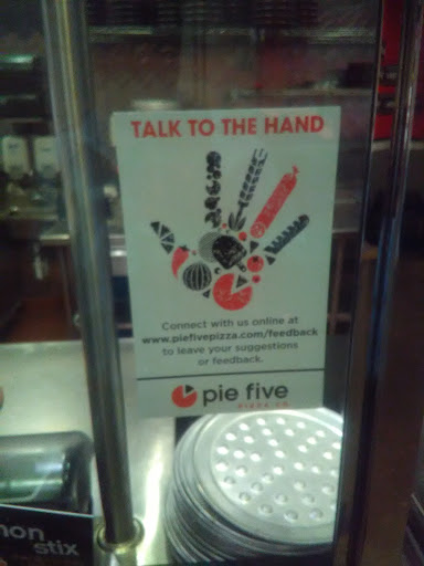 Awesome place!! It was my first time eating at a Pie Five this past weekend and I LOVED IT! You can create your pizza just how you want it. Its a prefect size, not too large or too small, and the breadsticks are amazing! Great staff, amazing pizza and even better prices! Ill most certainly be looking forward to going back again soon :)