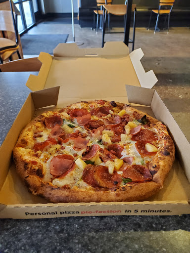 Pizza joint meets fast food. Overall the pizza was good and affordable. The place felt like most fast food joints today with lots of seating and a line to walk through to order your pizza. As long as you dont go in thinking gourmet pizza oven style pie then you wont be disappointed.