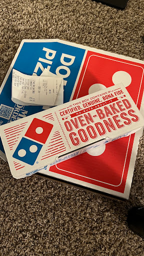 Only reason Im giving this three stars is because the pizza tasted very good actually. Its not five stars because we ordered two pizzas and they were not sliced evenly and they were off center. Very random cuts and some pieces were HUGE and some were tiny. Both pizzas were cut unevenly and the dessert was also cut unevenly. The mens bathroom looked like a gas station bathroom. It was dirty and the sink was dirty also as I washed my hands.