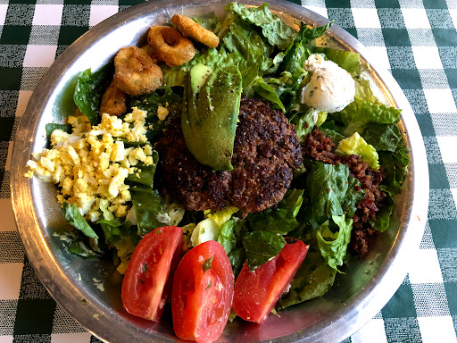 Seriously amazing burgers. We were vacationing in Texas (arriving and leaving from Dallas Love Field) and this place was our first and last stop. We had one of the battle of the burgers burger (pile-it-on) and the royale with cheese. The royale with the cheese is more of a traditional burger, done so right, the meat was tender, the cheese was so melty and delicious, and the condiments on the burger went so well together. Pile-it-on was also good, no complaints. We then got a ride side salad, which was actually a really big salad, the salsa ranch is amazing, definitely get that dressing. We also got the goat chips, theyre kinda sweet but they go really well together with the ranch they provide. We also had the steaming pile, if youre a fan of tator tots like I am, then you absolutely need to get this. Lastly, we had goat balls and pecan fried pie for dessert. The goat balls you can skip, the Brie in the goat balls were dry and just didnt taste very good, the fried dough on the outside was blah, the best part about the goat balls was the jam they give you to dip in. The pecan fried pie on the other hand was fantastic, the ice cream tasted kinda just like Breyers Ive cream, not great but went well with the pie. Overall, we loved this place. The service was great and friendly, I like that you can sit anywhere. The bar stools were fairly comfortable and I like the bench top tables.
