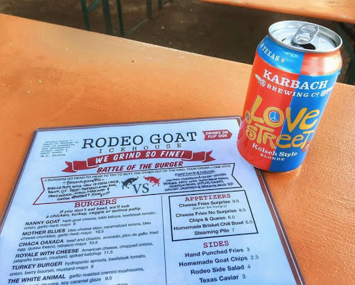 So I dont come here often because Im a simple, sloppy, cheese meat lettuce and bun guy. But today I wanted a bar top, a good burger, and a craft beer Ive never had before. So...Rodeo Goat. Being summer in Dallas I found a delicious refreshing lighter beer (green flash blonde). But now, to find a burger. All the specialty burgers look great and all but like I said, less is more to me. So I found the most basic burger on the menu (Royale with Cheese) and asked to make a few additions/changes to it. No prob. And damn it son... So if youre a simple burger boy or girl like me heres what you do: royale with cheese, add shredded lettuce, and sub mayo for mustard (because America). They load it with cheese and the jalapeño bacon is crisp and juicy, and I detected some chives. DO IT.
