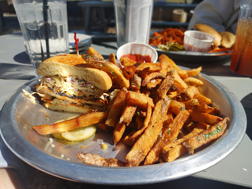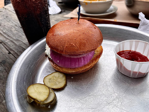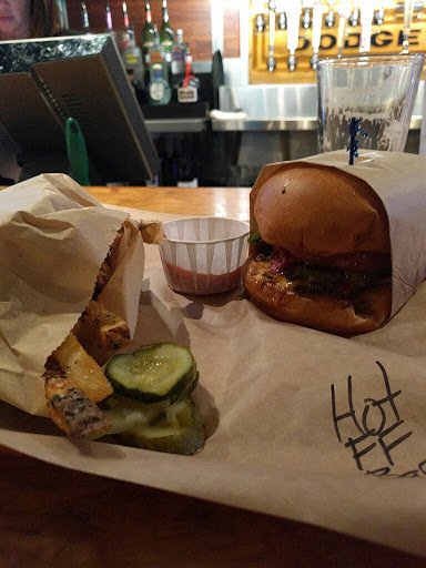 I would say 3 stars for inconsistency. Ive been here quite a few times and it was really good, and Ive also been a few times where it was not great. I went on Sunday and there were just a whole list of issues: Their version of a summer beer came out warm. Gross. Chips with the queso were stale (although their queso & salsas are bomb) . Overlooked burger - got well done when asked for medium. Soggy fries (?!). I will say that even when their burgers are over cooked they are still really good. They have a ton of fun combinations while still housing a staple classic burger, veggie burger, and amazing salmon and quinoa burger. Their sauces are really flavorful and match the food perfectly. This place can be a hit or miss (maybe they just get sloppy on sundays...) but its worth a try. And yes, I admit that I was so excited for my burger that a picture failed to be taken.