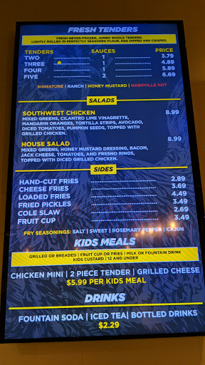 Well firstly I came with an open mind, hoping for a gem in my local neighborhood, thinking if its good Ill definitely visit again, I was dissatisfied.. The cashier looked bored like she didnt feel like taking my order, & sorta rushed me knowing it was my first visited, so Im like well I can take that if its good, after about a 12 minute wait.. I got my order expecting something amazing , biggest let down, the tenders were a toddler portion & really oily, the fries were burnt, tenders were slightly overcooked & tasteless. Im highly upset because the price was high to me, for what I got, raising Cains does it right, chik fa LA does it right, why cant they? Maybe it was a bad day, who knows , regardless I will not be returning ever again,