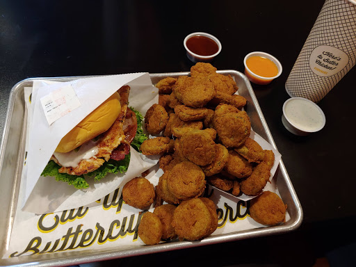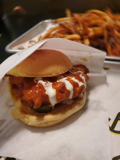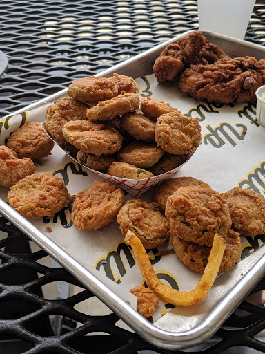 Was not impressed by this place. The atmosphere is very nice and the staff is super nice but the food was not so great to me. Seems to be just like Chick-Fil-a but not as good. Fried pickles were not great. The cut of the pickles were to large and he wrong type of pickle to fry. The Chicken sandwich was dressed with the lettuce, tomato, and pickles at the bottom of the sandwich so it made the bottom bun wet and soggy that I dont likey . I ate no more than what you see. Left the rest in the trash. Hate to waste food but