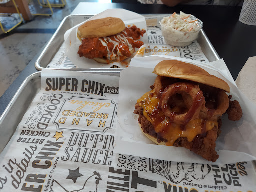 I normally dont write restaurant reviews unless theyre completely awesome or horrible. In this case, Super Chix is completely horribly awesome! The first time I tried this place out was through UberEats. I ordered the exclusive $15 UberEats combo that came with a Simple Chicken Sandwich + Hand Cut Fries (with your choice of seasoning)+ Bottled Drink of choice + Pint Frozen Custard of choice. Even though I was sad to find out that my sandwich was already humid/soggy, my fries went timid, and my frozen custard was melting when it arrived, it still tasted delicious! Of course, I dont blame them for the condition in which the food was in. I blame Texas heat and travel time. I wanted to give them a fair second chance by getting off my lazy butt and driving over to their location to taste it first-hand today. Place was packed during lunch time and rightfully so. This time around I ordered their Grilled Chicken Sandwich with lettuce, tomato, bacon, avacado, and ranch, side of Hand-Cut Fries with Signature Sweet seasoning, a craft soda fountain drink, and a large-sized Flavor of the Week (this week, its Mint Oreo) Frozen Custard (it came with a cookie on top, haha). It was more than I expected. It was extremely delicious. Not only do they have amazing food, but amazing service as well! Everyone there was very friendly and helpful as I was confused on the whole ordering and retrieving process (apparently, you turn in a checker chip to get your frozen custard). My only wish now is for them to have more space to sit down. Other than that, everything is perfect! In my opinion, this restaurant is better than Chik-Fil-A and/or Raising Canes (which was my previous favorite chicken place). Give Super Chix a try! You will not be disappointed!