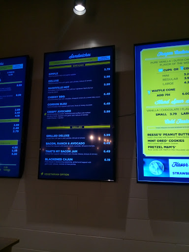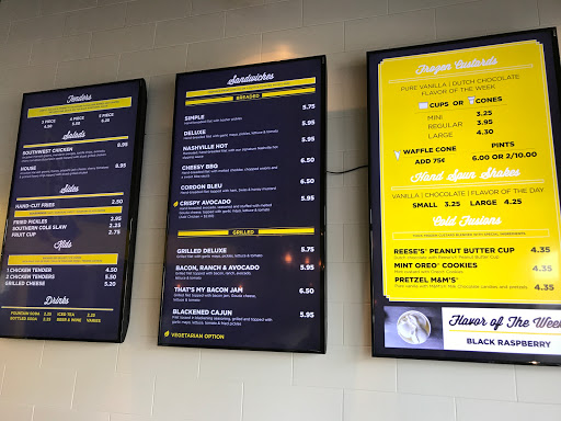 The menu is pretty typical of what you would expect at this type of venue (ex. chicken sandwiches, chicken strips, fries, etc) but they do a great job making it interesting: nice selection of artisan sauces, selection of seasoned fries, etc. I chose three chicken strips, sweet fries and lemonade. The strips were *thick* cut and juicy, honestly I started to feel full after 2! The fries were thin-cut and very good, not too sweet, nicely seasoned. Its a great spot for something different but I would not necessarily claim its better than chik-fil-e...taste is the same but their artisan touches is what makes it a different dining experience. All in all its a nice spot with great value and good food.