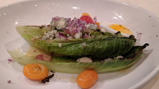 My wife and I had dinner at Table 13 on a Sunday evening before a holiday. We arrived at 7:30p and the restaurant was about 60% full. Our party had already been seated and served drinks in the ten minute gap between their arrival and ours. The exterior of the building does not instill confidence: the windows are blacked out and have menu categories written across them in yellow vinyl - steaks, lobster, etc. The interior, however, is quite nice. There are atom chandeliers running down the seating area and large, framed pinup drawings on the walls. According to one employee, the pin ups have been touched up to change their rating from NC-17 to PG-13. The menu is standard steak house fare with a couple of exceptions like Steak Diane and Beef Wellington. We shared the calamari and escargot for starters which both arrived warm and in an appropriate amount of time. They were good - no better or worse than most. They accurately set the stage for the balance of the meal - good, but nothing exciting. We followed with the wedge salad for me and the lobster bisque for her. The salad was medium sized, plenty of dressing and good cheese. Perfectly acceptable if not memorable. The bisque was good: hot, mildly spicy with recognizable pieces of lobster meat. Again, acceptable but not memorable. They have a good selection of entrees including sea bass, bone-in pork chops and steaks in addition to the less common options mentioned earlier. We both selected the 16oz ribeye. Our steaks arrived hot and well cooked at medium rare. Mine arrived a little towards the medium end of the scale but not objectionably so. In keeping with the theme of the meal, they were good but not exceptional. The table shared the creamed spinach, mashed potatoes and lobster mac and cheese. Of the wide variety dishes we sampled, I would give the mac and cheese the highest rating. It had good sized pieces of lobster meat and had enough spice to set it apart from the middle of the road path traveled by the other dishes. All in all, I was completely satisfied with the experience for the price. The food, decor and service were all good. The problem is that Im generally left not feeling much of anything, one way or another. I dont eat out as frequently as I once did and I generally select restaurants based on some individual greatness whether its a particular dish, ambiance or fantastic service and Table 13 didnt have any of those things to me. I have a friend whose wife adores Beef Wellington and I expect this to their new go-to special occasion restaurant for that reason (and because the only other Dallas area restaurant that serves it is the Old Warsaw which may currently be the worst currently operating restaurant in the city). I dont know the table number where my next ribeye will be served, but it wont likely be 13.