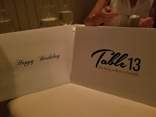 I dont do it on a regular basis but Im not a stranger to "fine dining". My family doesnt indulge often but when we do, we indulge. Table 13 was a first time experience with me getting to do something nice for my father for a change and it was just really important to me. Working the night shift and not being a constant patron of places of this level, I had to depend on the Google ratings and I could not have ended up happier. The restaurant was elegant without being ostentatious. The "Vegas" style mentioned was portrayed with enough class that the mark they aimed for, I felt, was struck. My father and stepmom were both very pleased with the food and overall ambiance (as was I) with it being dim but not "dark" and the piano being at a level that allowed pleasant conversation without leaning forward constantly. The food was excellent and had an "ownership" from the chef and his or her staff. The lobster bisque was different from most anywhere Ive ever had it and was also whipped in its creamy texture and just a few lovely bits of lobster to make it perfect. My filet was perfectly cooked (arrived a SHADE cool but hey it happens) and the lobster was great. My fathers Salmon was cooked perfectly and my stepmom enjoyed her meal thoroughly. Lastly the service was peerless. Im embarrassed to say I dont recall the gentlemans name that waited on us but I never looked up wishing I could find him NOR did he hover annoyingly. Having waited tables in my youth I can attest to the fact that this is a difficult balance to achieve and I hold no shame in saying I tipped him well for his trouble. In good part because he certainly never made me and my family FEEL like we were any trouble to him as so many manage to do in dining these days. All in, Table 13 provided an excellent Fathers Day experience for me and my family and there is nothing more important to me. Ergo they have my thanks and will certainly have my business again when we choose to indulge.