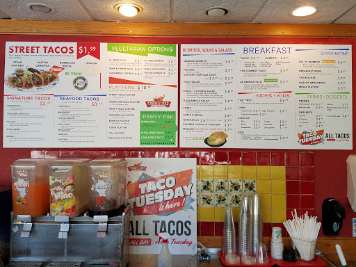 With the street taco craze taking hold these are great quick, large portion tacos. Rice and beans arent bad either. Grab a Mexican soda even a beer. Other menu items other than tacos so something for everyone.