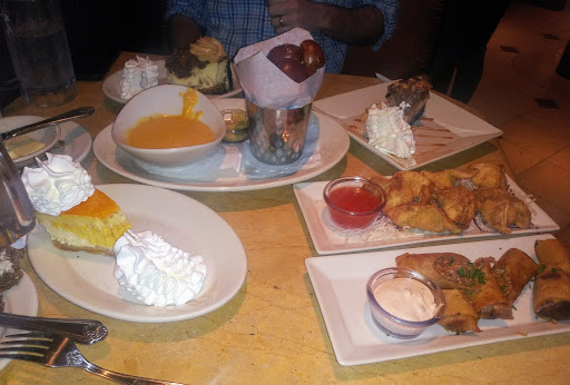 I came on a weekday night around 4:30pm to take advantage of Happy Hour which is only served in the bar/lounge area. My date and I were quickly seated and the server took our drink and app order in a timely manner. The app (spinach and cheese dip) was great, better to eat with the bread. However, after delivering our drinks and apps the server was rather busy with other tables and it took a while for her to get back to us. The restaurant allows you to order some entrees in lunch portion sizes before 5pm and we almost missed ordering before 5pm because it took a while for the server to come back. It also took a while for us to get bread too although Im not sure if you are supposed to ask for it or if it is supposed to come no matter what so that may be my fault. Another server delivered our entrees. We both got pasta and I wasnt particularly impressed with my pasta. I ordered the garlic noodles with chicken. The garlic sauce was rather bland. My date got the cheese noodles and it too was alright. The highlight of the meal was of course the cheesecake. We ordered the chocolate cheese cake with chocolate mouse and it was awesome. I will definitely make a return trip as I want to try something else other than pasta.. At 5pm it looked like another server arrived and once that happened we received excellent service.