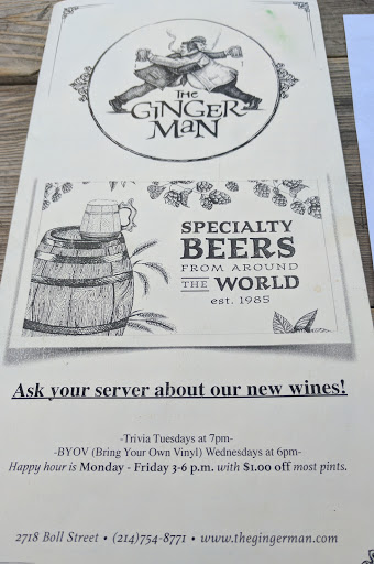 Simply the best place to go for beer in Dallas. I love the Ginger Man. I love sitting outside with my husband and my dog on either the front or back patio. This place is not like the strip mall Ginger Man Pubs of the suburbs, this is and old house in the middle of uptown. I love it.