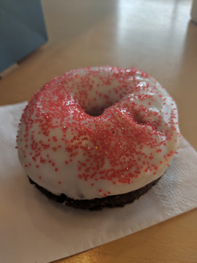 Love the doughnuts here! The chai doughnut is my fave! Love the selection of doughnuts and the cafe is large with many tables, great service, great little coffee bar also!