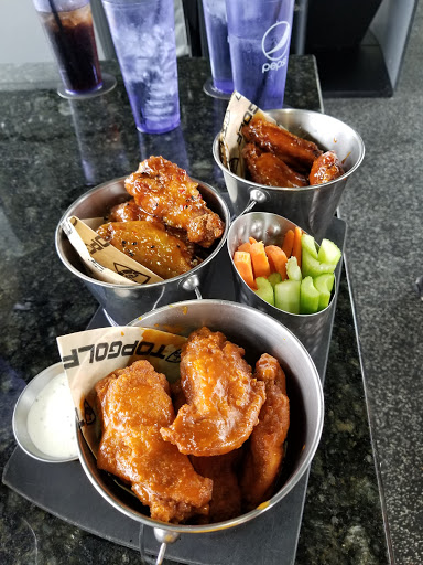 Top Golf is a fun experience no doubt. However, we always have a bad taste in our mouth from both the staff behind the counters when you check in, to the waiters outside. Its a great concept to be able to eat & drink right behind your tee, but when the waiter takes more than 10 minutes to greet you, nor asks for you refills when your beer is almost empty, to not picking up the food plates when youre finished eating and having to place them aside yourself, to having to ask for your tab yourself because every time the waiter walks by, doesnt simply make eye contact and ask if we need anything... This place would be a gold mine if they could get the customer service and staff up to par. The staff behind the counter also does not offer much explanation to what they are charging you for. When my fiancee was asking why he had to pay $8 for a new card (since he lost his) as opposed to the $5 a new card would cost, the attendee snapped back, "Its just the way it is and your name is in the system so theres nothing we can do about it." No smile. Nothing.