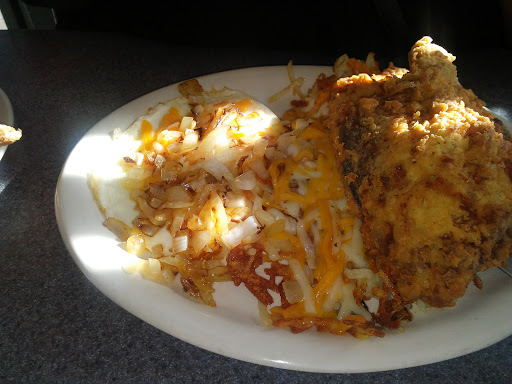 Great Food, Prices, Location, Service, first time visiting, had Lunch Pork Chops, Hash Browns, Toast, Eggs fulfilling. I will.visit again and spread the news too my friends and strangers.