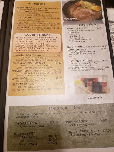 The sushi chef, Shigi, bought this restaurant from the former owner this year. May want to consider that if you are reading the older reviews. I had already eaten at another Japanese restaurant for the evening (not content with the food and thought they had ramen), and the sushi chef at that restaurant actually recommended Yama Sushi for good ramen. I loved it. Chef Shigi-san suggested the off menu shoyu chicken broth ramen for me. One would think on my second dinner of the night I would be too stuffed to eat anything more, but this bowl of ramen was worth it and the eventual stomach ache Im sure to have in about an hour. The broth was what made it stand out. You could taste the slow simmered broth, the skill at the individual ingredients, and the comprehensive flavor that worked together. I think thats the hardest part of great ramen as the ingredients are generally the same. The favors were traditional shoyu, yet additionally special with whatever magic he did to make it so I ate the whole thing in seconds. Ashitama (spelling?) egg was cooked perfectly, and I ordered an extra one to compliment the rest of my ramen-heaven. The tonkatsu pork was thinly sliced with just enough fat to make you wanting to savor each bite to save with a bite of noodles. Also, they serve "ippin" or Japanese "tapas" (small plate sized menu items), and I tried the tontoro, or pork cheek. Absolutely delicious. May not sound good to traditional western cuisined appetites, but it tastes like pork belly which tastes like awesome. Ive eaten tons of ramen in Japan and also thru out the Texas metro areas like Dallas, Austin, and Houston, and the total genuine Japanese sushi and bar experience at this place makes it one of my favorites. Absolutely recommended. Sit at the bar and chat with the chefs if its a slower night! Now, I came on a Monday night where it is slower, so my service, conversation, and food time were great. I know there is an incredible Tuesday night sushi special, so its very busy then per Shigi-san. Probably coming back tomorrow with a larger stomach.