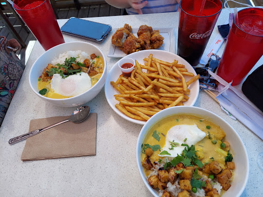 Most of the people working here were high AF. The order # was promenently displayed on my table, yet the guy walked past me 3 times and asked everyone else if it was their food before finally asking me. Ive never been served hot food here. Its always lukewarm by the time I get my order.