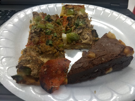 The owner of the I Fratelli pizza surprised our office with pizza today! Thin crust and delicious. Once was pepperoni and the other was maybe tomato and basil. Not too greasy. Not to mention good advertising because I think they made more than a few office fans!
