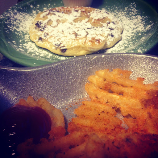 The service was good. The food was pretty good but the pancakes lacked flavor.