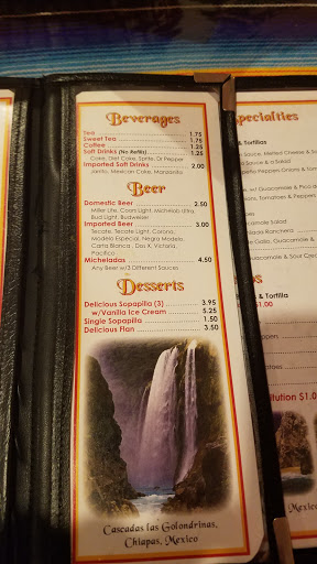 Like alot folks in the area, we have drove past this place many times, but finally decided to stop and check it out. Upon entry we were greeted right away and given our choice of seating. Chips/Salsa/beans (all good) were presented right away with our drink orders. The menu has a more traditional mexican flavor to it. They have several huevos dishes including huevos rancheros and chorizo for example, as well as enchiladas, burritos, chimichangas, etc. Food prices are very reasonable as are the drink prices. The meal was served on hot plates with plenty of food. Very will cooked (had the huevos with chorizo). We had three cervezas (beer) and two dinners for around twenty bucks! Definitely will revisit and try other menu items. Good service, good prices and good food.