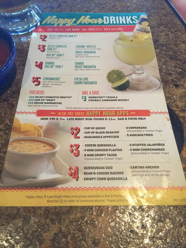 My girlfriends and I (3 of us) went there this evening...one word DISAPPOINTED. There were about a million host at the front and not a single one of them knew what they were doing. We were sat and about ten minutes later our waiter came and apologized because they had ran out of chips. We also asked about their drink specials and he had no idea. We order guacamole for $6.49 in which came our to be about a 1/2 cup. We asked if this was the appetizer portion and he confirmed it was! What a rip off. No flavor and we made double what we would at another Mexican place. The drinks from the bar were really good. Thats about the only plus. The food was just okay. We got soft tacos and the shells were hard like they had been over cooked. Not to mention it wasnt busy but took forever. Overall we wont be coming back. What a waste of money and time.