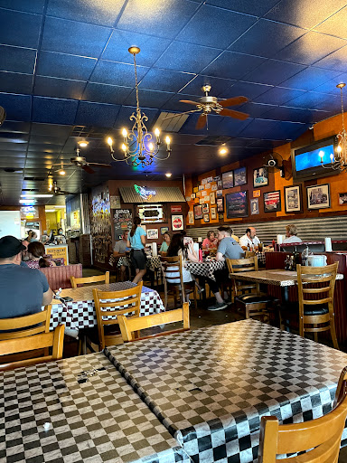 Really weird restaurant. Not only is the decor bizarre, but there is no indication as to whether it is seat yourself or wait to be seated, and the menus are stored in the middle of the restaurant on a table. The waitresses were flustered and unfriendly, and it took quite a while to get our food. The food was also sub-par. Ive had better fried pickles at an arcade, and the burger was so-so. I wont eat there again.