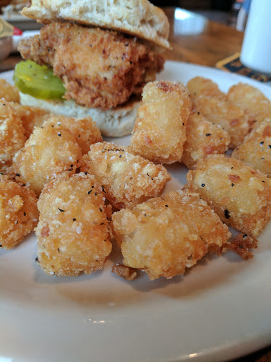 Fried chicken Biscuit w/ pickles and added egg and bacon, came with tator tots. Great breakfast, defenitely recommend Rising Sun Cafe