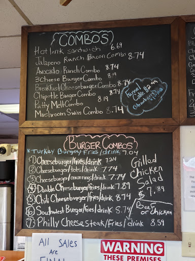 This is a great place for burgers and catfish and a Philly cheese steak. Small, the cashier is the server, and they give you a glass of ice to fill your own drink, but the food is hot and cooked just like home. Extra napkins on the table, youll need them.