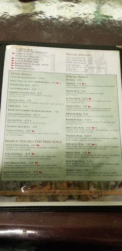 SO FAR THE BEST FLAVORING CHINESE & JAPANESE CUISINE IVE EVER HAD.. THE PRICES ARE FAIR, I HIGHLY RECOMMEND BAMBOO KITCHEN TO ALL WHO ARE WANT TO DINE IN A CLEAN AND RESPECTABLE RESTAURANT.. THE WAITRESS ARE MOST HELPFUL IN EXPLAINING THE MENU IF YOU DONT KNOW THE MEALS.. I GIVE BAMBOO KITCHEN 5 STARS..