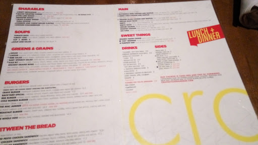 Ive heard a lot about Crave, seen the ads; so I was excited to check it out! The look of the building, interior space and outside dining areas are fantastic...modern, industrial, but warm & comfortable. The service was friendly & efficient. They offer a good variety of foods on the menu with classic sandwiches, salads, entrées, good variety of sides with little twists.The costs are slightly higher than some chains, but I was happy to pay for good quality food. When I placed my order for the Crave Burger & fries ($13), I had high hopes! I was very disappointed. I ordered my burger "no pink, but still juicy." The waitress said "medium well." My burger was not only dry, but hard to chew. The sautéed red onions were, in total, 2 interior rings, approximately 1 Tablespoon. The homemade Guinness steak sauce didnt taste like Guinness, but like a spicy ketchup. The really thin shoe-string fries were cold and tasted like the oil they were fried in. Honestly, I know mistakes can happen and Im hoping it was just an "off" night for the cooks. I will return & alter my review if the next trip is better. To be fair, I didnt bring the problems to the attention of our waitress, because the place was filling up & I didnt feel like having the conversation. They, quite possibly, would have replaced the order.