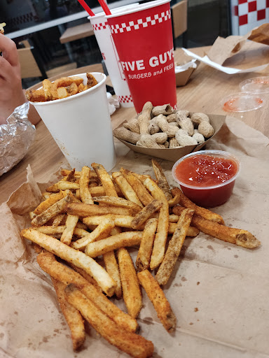 Today I had the grand experience of turning my ankle & falling in the pkg lot with an audience I might add upon entering Five Guys for lunch. (Yes, that was me... lol) I asked for a couple of bandaids & the staff were awesomely polite & supplied me with not only bandaids, but ointment & antibacterial wipes as well... once sitting down for lunch the staff were on the ball & customer service A++... the burger was wonderful... my personal opinion, the fries should be cooked more & use less per serving... but will definitely go back...