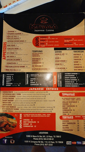 **Its not as bad as the reviews would make you think!** Me and my family have really enjoyed the Katsura restaurants of Juárez, so when me and my dad where in El Paso yesterday, we decided to give this one a shot. I looked up the reviews for it and initially I got worried, since many of them went full negative and rated 1 star. However there must have been some huge revamp between the last negative review and my visit, because it was nowhere near as bad as I expected. The tables were clean and the waiter that served us was very friendly. However something I have to note is that the service was kinda slow comapred to the other Katsura restaurants Ive been to even though there wasnt a lot of people. I had a veggie yakimeshi and a ramen soup (thinking it was going to be a small bowl). Both of the dishes were very clearly freshly made. The rice in the yakimeshi was very good, and it didnt felt burnt or compacted. Ive never had ramen before, so I didnt know what to expect. Some people in very old reviews compared the ramen to instant noodles, but I can assure you nowadays that isnt the case. The ramen had a much different flavor and consistency than those of instant noodles. I dont think Katsura is exactly what youd call authentic Japanese food, and I dont think that it really matters as long as the food is good (plus like 99% those "Japanese food connosieurs" that you see around on Google and Yelp are just pretentious hipsters who havent eaten in Japan, arent Japanese that have tasted actual Japanese food or havent taken a gastronomy course, so you shouldnt really trust them when it comes to authenticity). I think they must have changed chef or something because again, my experience was nowhere near as bad as the old reviews made it out to be. That said though, the rolls is kind of expensive (dad ordered a roll which was worth around 13 dollars), which is weird because the ones in Juarez are very reasonably priced. My final veredict is that the food is good, but if youre not someone whos got time to spare or are looking for cheap meals, this is not the sushi restaurant for you.