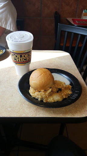 Love Golden Chick. If you like super salty food that will challenge your sodium level, then you will love Golden Chick. The rolls are awesome, and the chicken tenders are great!