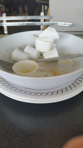 At first I was impressed with the updated look, compared to the Waffle House we visited in Farmers Branch. however, the waitress, Emma, I believe that was her name, made a rude, defensive comment right from the start. my husband and I are visiting from out of town with our two kids. A 3 yr old and 7 month old. This waffle house allows smoking and i had no idea (the other one didnt). anyway I asked her, and she let me know it did, and I thanked her and told her where we were from, in which she replied, "Theres nothing I can do about it," then rolled her eyes and walked away. while in the restroom with my toddler, my husband tried getting her attention twice until we had to ask the manager for more chocolate chips for my waffle. there was Maybe 10 chips. Avoid this place! Everything was overcooked, even my grits had a thick layer of hardened grits like it had been sitting or something.