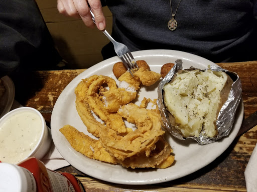 I have been eating here since 2001. Service has always been slow and still is. Dont waste your money on the steak. $20 rib eye (12 oz) looked and tasted like a sirloin. Ordered onion rings as an appetizer and they came with the meal, warm from sitting under the heat lamp. Ordered my salad with French and bleu cheese dressing and they substituted ranch for French. It used to be my go to place for chicken fried chicken. They were huge and delicious. But I probably wont go there for another five years.