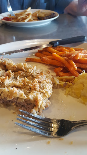 Pretty disappointing. Great rolls, but served with oily tasting spread, not butter and not tasty. Delicious black eyes peas, tasty but limp French fries. Chicken Fried Steak was tough and neither the breading nor the gravy were noteworthy. Waiter watched me put two fries in my mouth with half of my meal still on the plate and asked if I wanted dessert or a to go box. After chewing, I told him I wasnt sure since I was still eating. He left the check anyway. I kept eating, and he did make it back to fill my tea once. This was not a busy lunch or dinner hour, it was midday on a Saturday. Good service would have salvaged a mediocre meal, but instead I got the bums rush.