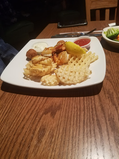 The restaurant was fairly crowded for a weekday yet the service was relatively quick. The fried calamari appetizer was delicate, not overly breaded. The crab bisque had surprisingly little actual crab meat even though them menu touted two kinds of crab used. The fish and chips were light and airy with waffle fries, a nice change from the standard issue fries.