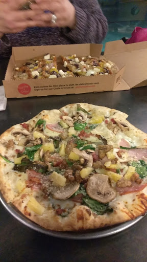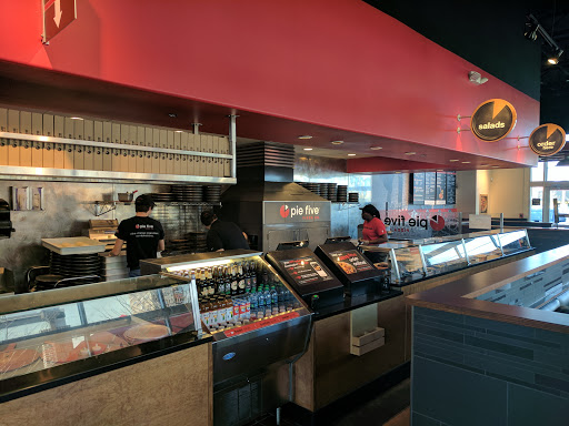 Slowest service of any pie five. Went tonight. Three people in line. They are writing out everything on wax paper and then making the pizza. Six workers with four standing around. Making crust on demand pulling it out of the fridge one by one. Fifteen minutes standing there I just walk out as they have started two pies in this time. Every time I go there it is slower than the last time and the prices seem higher than when they openers or at least compared to the one by work.