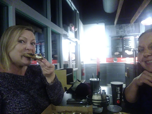 food was fine but the service was terrible. the young blonde woman who "helped " us was surly ad dismissive. she nether looked at us to acknowledge our presence but seemed irritated at our food order as she flung the ingredients onto our pizzas. its possible that she was angry that all of the male staff were either in the back or wandering around the shop leaving her on the line alone. she was constantly distracted watching for them.