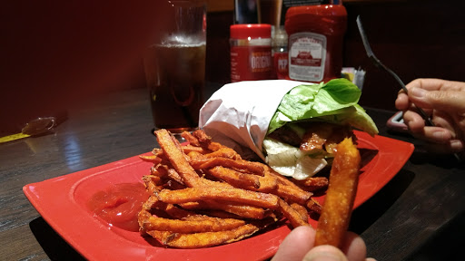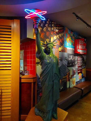Red Robin has fantastic burgers. Its just a fact. Their gourmet burgers are really out of this world. They have a super diverse menu and sometimes top their burgers with stuff youd never think go together, but they really do! I enjoy that they serve steak cut fries instead of the usual tiny sticks you get a fast food joints. They also have some great non-burger options like chicken and fish that are all quite good as well. The wait staff at this location are all very nice and friendly. This location was also recently remodeled and has some very fun artwork on the walls and ceiling. Their bar is good with a variety of local craft beers you wouldnt find at most chain restaurants.