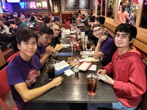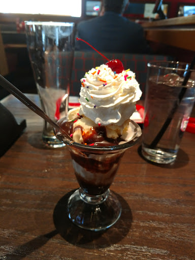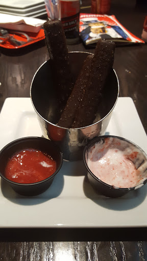 Our second time to ever come to Red Robin. The reason I only give it 4 stars instead of 5 is because our kids werent really impressed enough with it to really want to come back as often as my husband and I would like. Guess it will have to be a date night pick. My husband had the Bleu Ribbon Burger and I had the Smoke & Pepper Burger. Both were very good! The steak fries are so good and crispy. Make sure to save room for dessert because the Fruffles are the best! A brownie stick that is dipped in dark chocolate then sprinkled with sugar crystals and French Sea Salt served cold with a berry "ketchup" (Strawberry and Raspberry puree) and whipped cream! All I can say now is, YUMMM!!!!